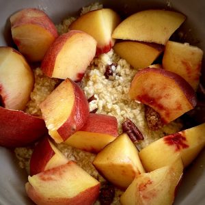 - Lavez puis coupez votre fruit de saison et disposez le sur votre porridge.