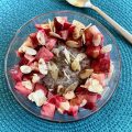 - Fruits de saison (les fruits rouges sont des merveilles pour la santé, …) = source de vitamine > coupés en tranches, fines lamelles, dés, …