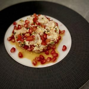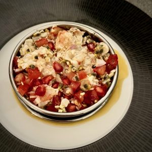 Dressage :Utilisez un cercle à tarte de 10 cm de diamètre placé au centre de l'assiette.Vous pouvez aussi le présenter dans un verre.