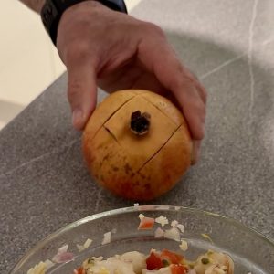 Mettez les grains de la moitié d'une grenade.Mélangez.Gouttez et salez, poivrez si besoin.