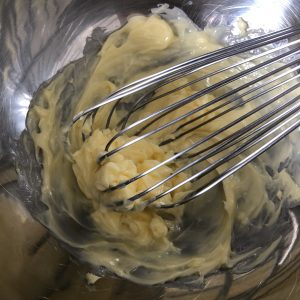 Dans un cul de poule, préparez le beurre pommade : votre beurre doit être à température ambiante, travaillez-le à la spatule jusqu'à l'obtention d'une consistance lisse et souple, telle une pommade.PS : j'ai utilisé un fouet comme vous pouvez le voir sur les photos mais après réflexion bien mieux à la spatule)
