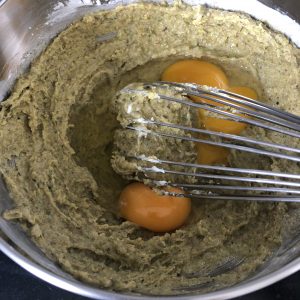 Ajoutez les oeufs. Homogénéisez l'appareil.
