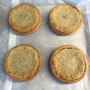Venez garnir vos fonds de tartelettes avec la crème de pistache jusqu'à la moitié supérieure.PS : j'avais précuits les tartelettes sur la photo elles sont donc décerclées mais mieux vos gagner du temps et cuire avec la crème de pistache directement => objectif efficience!