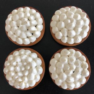 Le jour J : démoulez et déposez les inserts sur la pâte de pistache une fois les tartelettes refroidies.