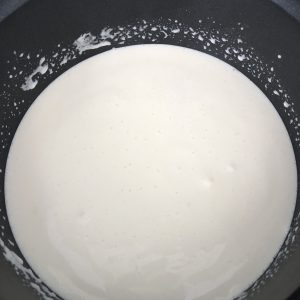 Mettez la crème liquide dans une petite casserole. Faites-la atteindre l'ébullition rapidement sur feu moyen fort (6/9 sur ma plaque), il ne faut pas la réduire!