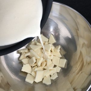 Coupez le chocolat blanc en morceaux et mettez-le dans un cul de poule.