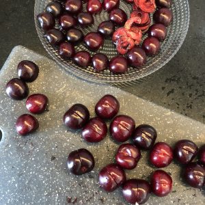 Coupez vos cerises en deux et dénoyautez-les.